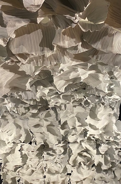 The third exhibit was created on-site, “Billows” by American artist Barbara Sorensen and is on display through December 31st as well. It is a very simple exhibit but, because of its simplicity, for me it really brought home what the purpose of art is. Recently, I was reading about a study on awe. A-W-E. Awe, is this sense of feeling something is bigger than you, and that in effect provides you with this grounding experience that puts everything into perspective for you. Anything that you have going on at home, at school, work, friends, side hustles, you name it. Sorensen does a lot of nature representational art, on a large immersive scale. And this piece was a great way to close my visit to the museum. It was elegant and soft, but yet the material is stiff and seems to be made of zippers – but it’s not. I kept walking underneath it, almost as if it could wrap around me. And I TWIRLED while looking up. I just let go.