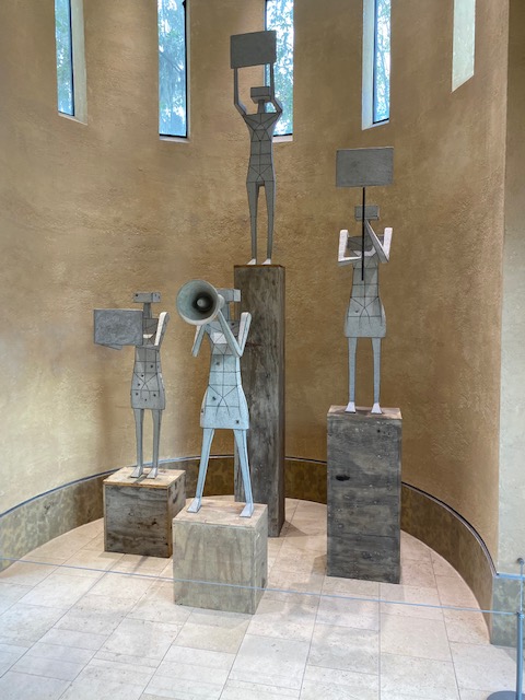 The Rollins Museum of Art is currently FREE ADMISSION! You can walk around the school grounds afterwards. And for my Spanish speakers – Rollins has a Spanish art talk session with the Curator herself, Arte y Cafe. The Rollins Museum has 3 exhibits currently displayed and they are all different in their own way. Right when you first walk in there’s a hallway showcasing very modern art called “Art Encounters One Act of Kindness: A World of Difference,” and this is on display through May 14, 2023. And if you are really big on contemporary art, then you might like this one. My favorite work is the 4-piece sculpture called Protestor I-IV by Mexican artist Pedro Reyes. It’s made up of four geometrical representations of protestors, and it had a “voice.” I could practically hear their echo, but at the same time, the quietness of the museum helped show what the protestors were fighting against – being silenced, which can be literally or figuratively. It’s this contrast of loud and quiet working simultaneously that brought the piece to life.