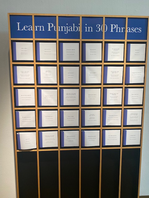 It may be that because I am from Puerto Rico and don’t experience the same level of differential treatment that can push people to want to hide the history of their family heritage, I actually wasn’t enthralled by it. While the cultural backgrounds were different, it seemed like the artists were given specific materials to work with and there was this repetition of artwork presentation that made the whole experience flat for me. It felt limited and constrained. But this may be one issue of traveling exhibitions. How do you safely get from one location to another, various artworks that took artists time and energy to conceptualize and then create? I’m sure the pandemic hasn’t made it any cheaper or easier to arrange the transfers. Sometime after I left the museum, I was thinking about the piece “Learn Punjabi in 30 Phrases” by Sarah Maple. I saw how commercialized language learning is, but at same time how heartbreaking and deep the process is for someone trying to connect their roots. So maybe it wasn’t as flat of an experience after all.
