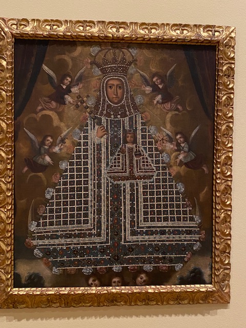 I actually was much more intrigued by their exhibit, From the Andes to the West Indies: Spanish Colonial Paintings from The Thoma Collection. I got there just in time for a lecture by Dr. Ilena Mendoza from the University of Central Florida. Which, lectures are another fabulous resource for you all to take advantage of! Some of the pieces in the exhibit were talked about in the lecture, so you get to hear some information that will help provide you with some history, some context to help you navigate the exhibit. Maybe you’ll learn some things that will spur you to investigate a little more on something in the exhibit. Dr. Mendoza explained how Jose Campeche, a Puerto Rican artist in the late 1700s, used the Rococo style in Caribbean paintings of local high-profile families and used local cultural aspects such as a type of flower, or a maraca, or a type of building in order to tell the story of the family he was painting and to depict where this is taking place. Campeche was little bit a Da Vinci in his own right – he was self-taught and dipped his toes in multiple arenas such as making musical instruments, architecture, and designing coat of arms.